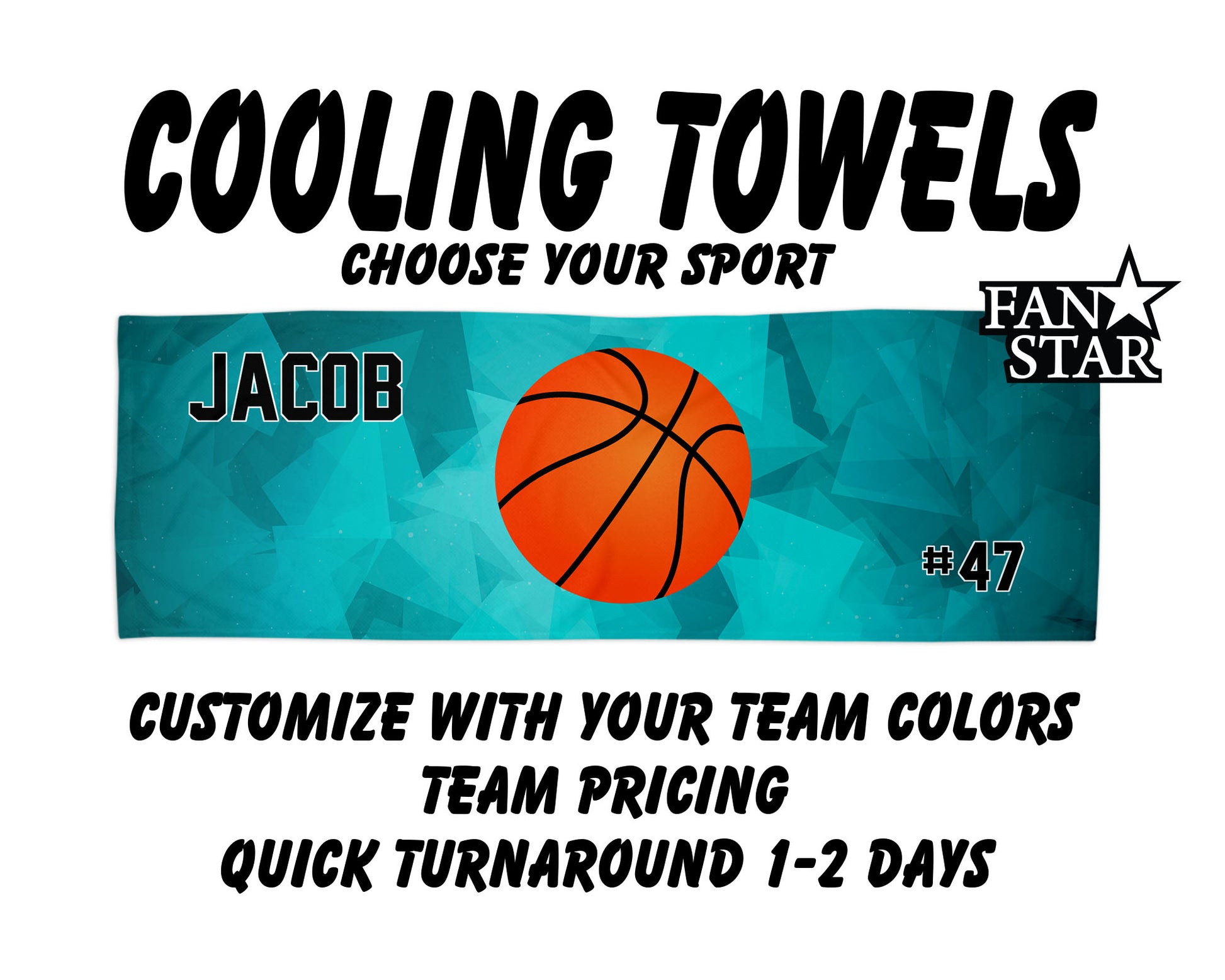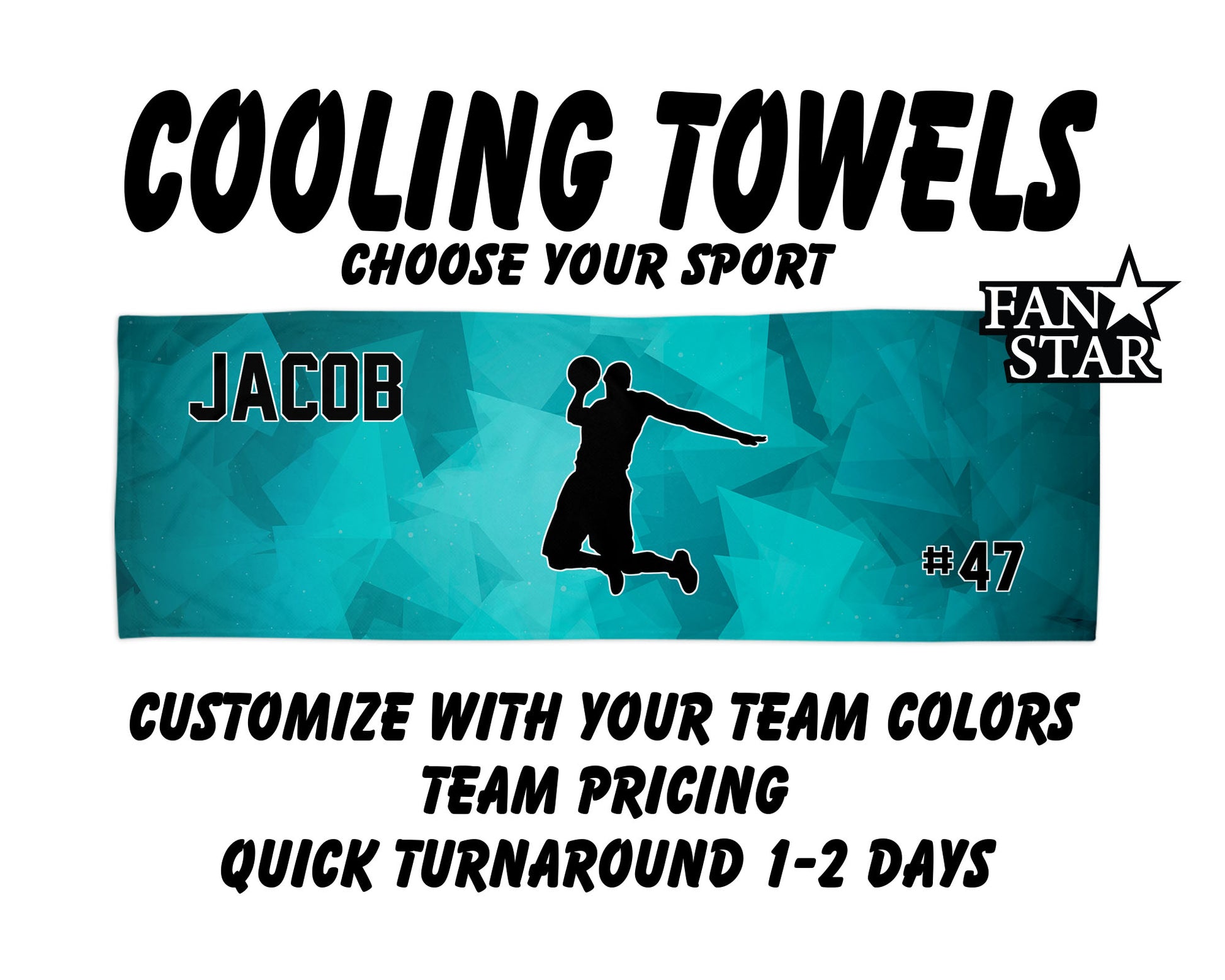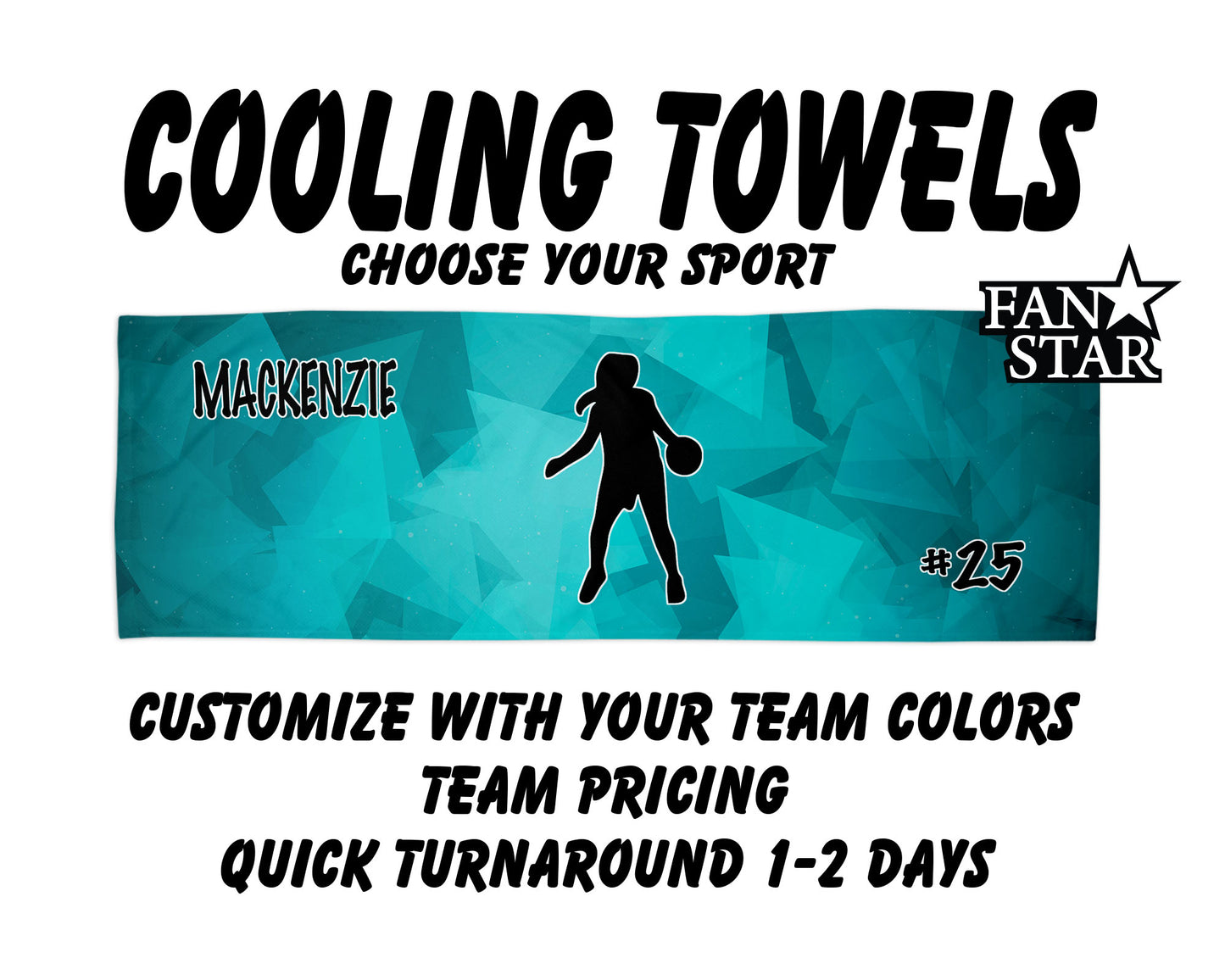 These cooling towels are perfect for keeping your athletes cool! The towels can be customized to match your team colors and can also be personalized with their names and numbers. The towel measures 12" tall by 31-1/2" wide. The towel is sublimated so the printing is permanent, which means it won't rub off or peel! The back side of the towel is white. The towel can be machine washed and dried; however, it is recommended to not dry with fabric softener.