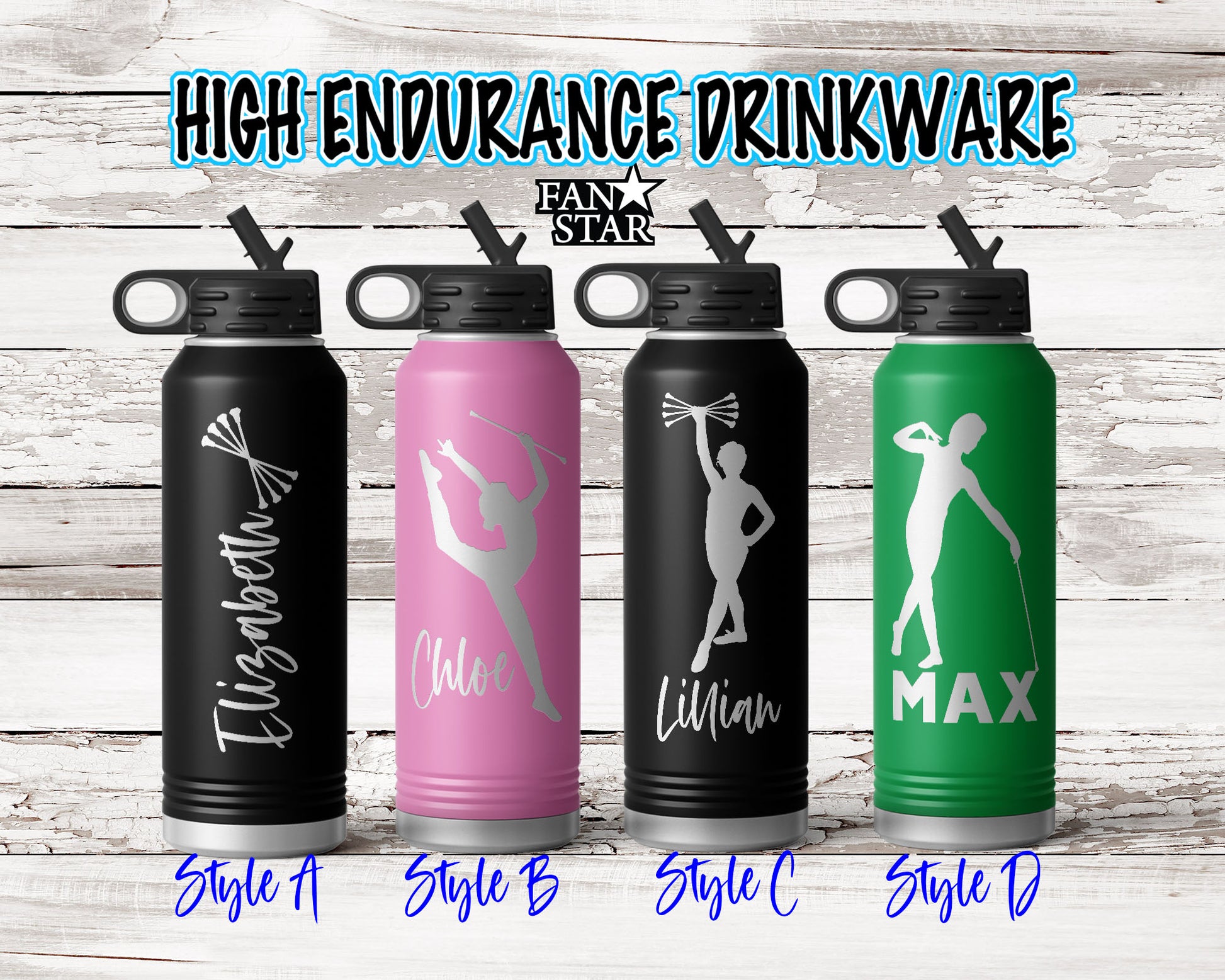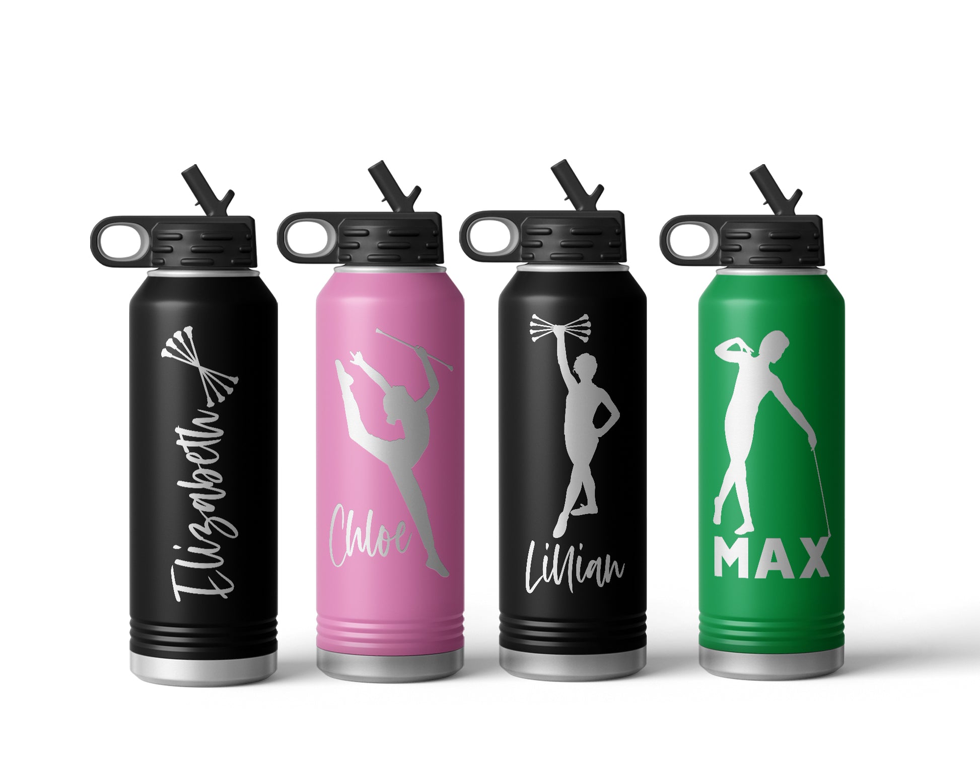 Engraved Baton Twirling Stainless Steel Water Bottle, Choose Your Customizations