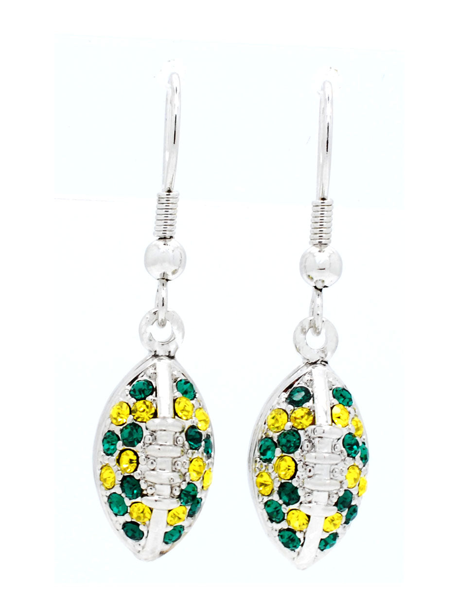 These amazing football earrings are the perfect accessory for any Bison fan! The earrings measures 1-1/2" long. They have crystals on the front and a heart design on the back.