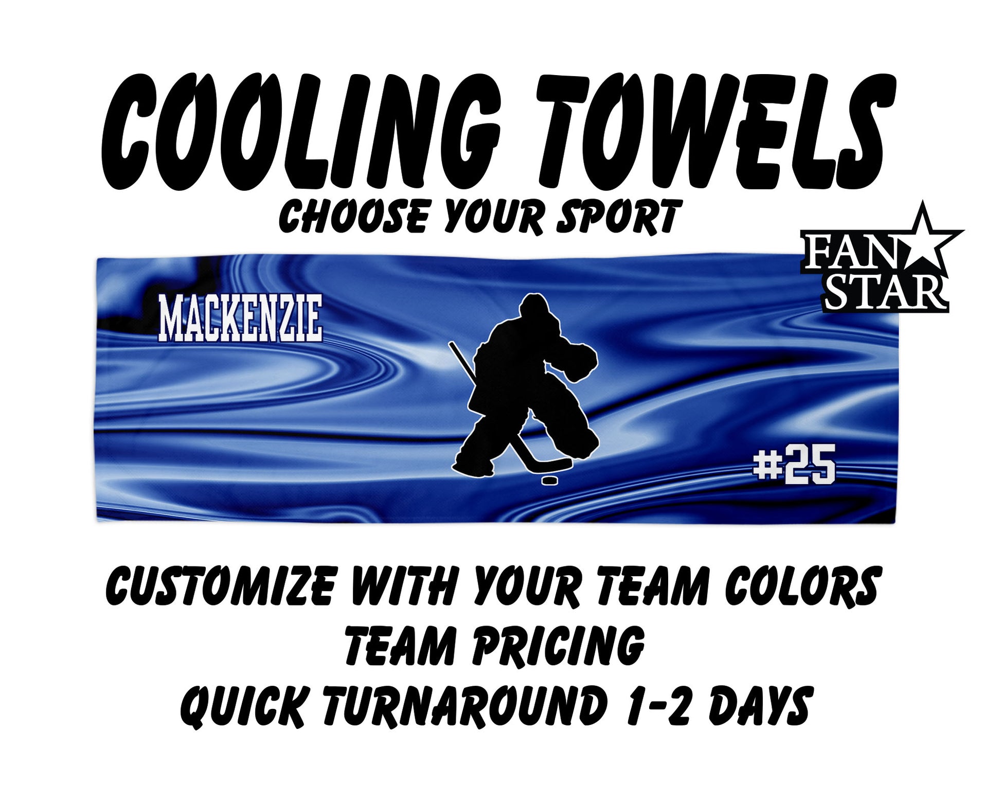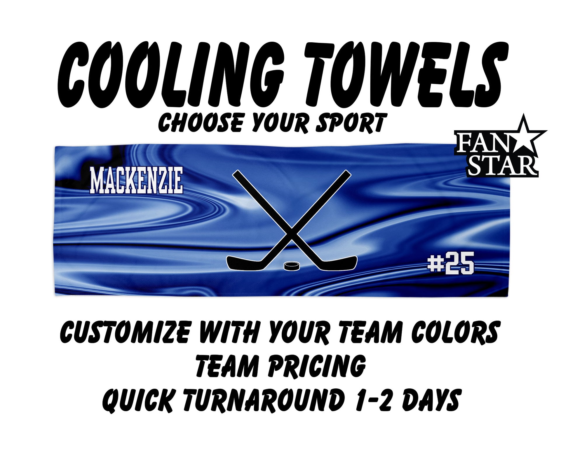 These cooling towels are perfect for keeping your athletes cool! The towels can be customized to match your team colors and can also be personalized with their names and numbers. The towel measures 12" tall by 31-1/2" wide. The towel is sublimated so the printing is permanent, which means it won't rub off or peel! The back side of the towel is white. The towel can be machine washed and dried; however, it is recommended to not dry with fabric softener.