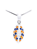 This amazing football necklace is adorned with brilliant orange and navy crystals. It is shaped like a football with stones on the front and a cut out heart design on the back. It measures 1" tall.