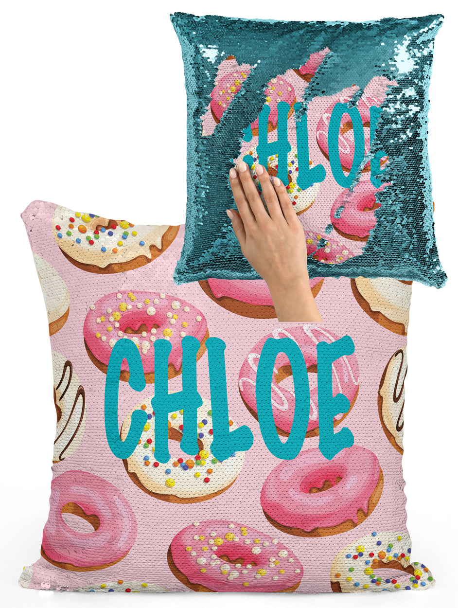 Personalized Donut (Doughnut) Mermaid Sequin Flip Pillow