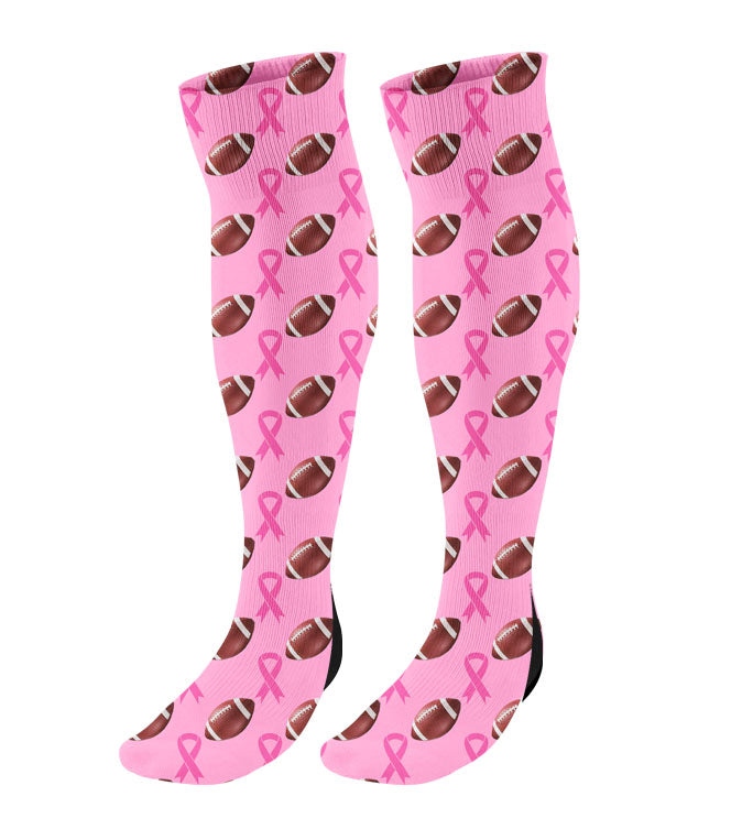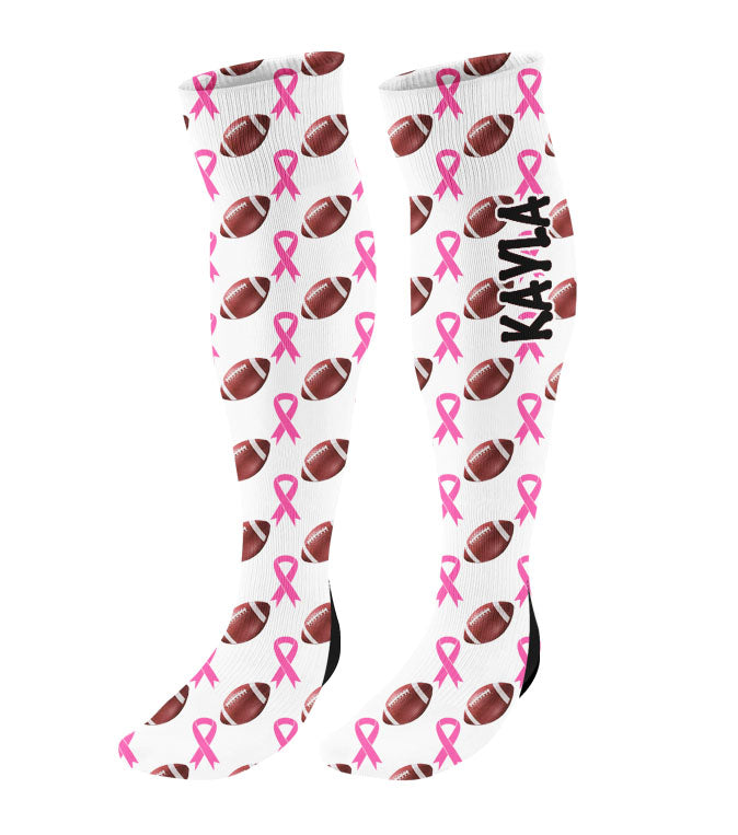 Personalized Football Breast Cancer Awareness Ribbon Knee High Socks