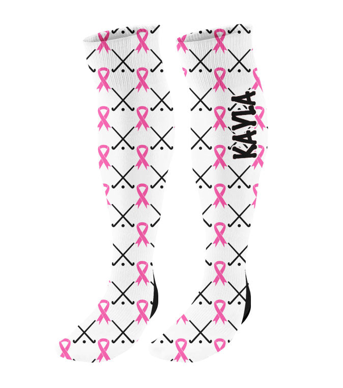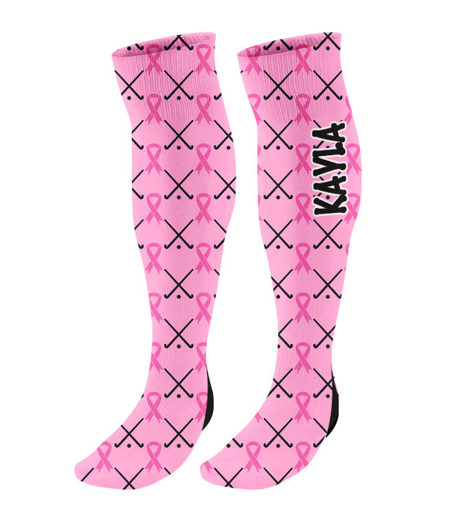 Personalized Field Hockey Breast Cancer Awareness Ribbon Knee High Socks