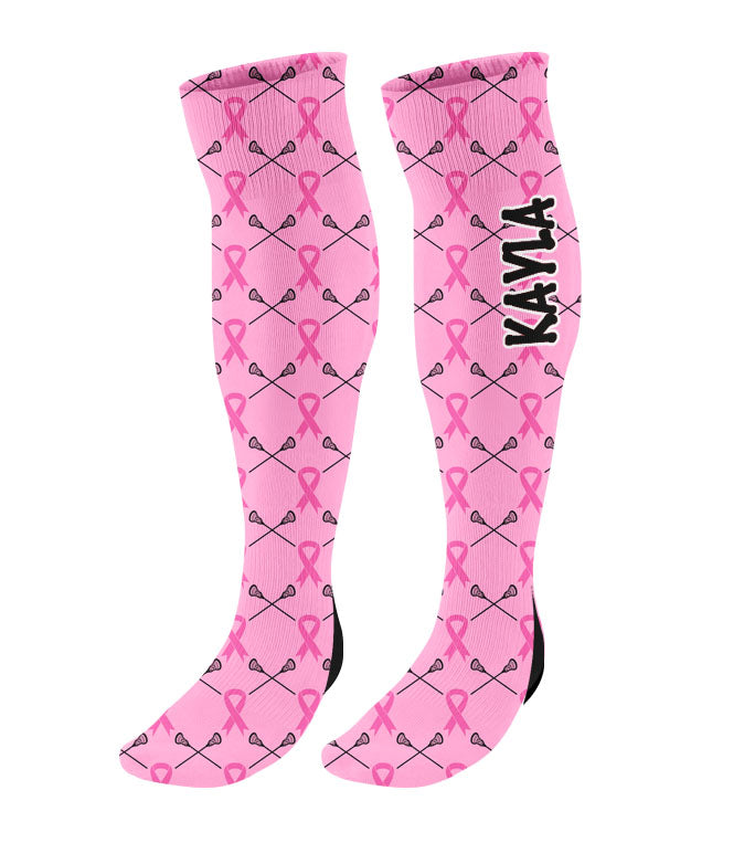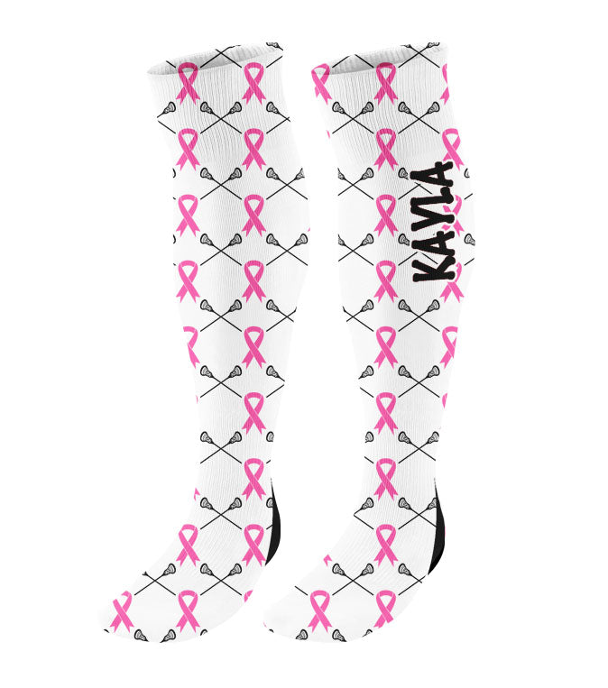 Personalized Lacrosse Breast Cancer Awareness Ribbon Knee High Socks