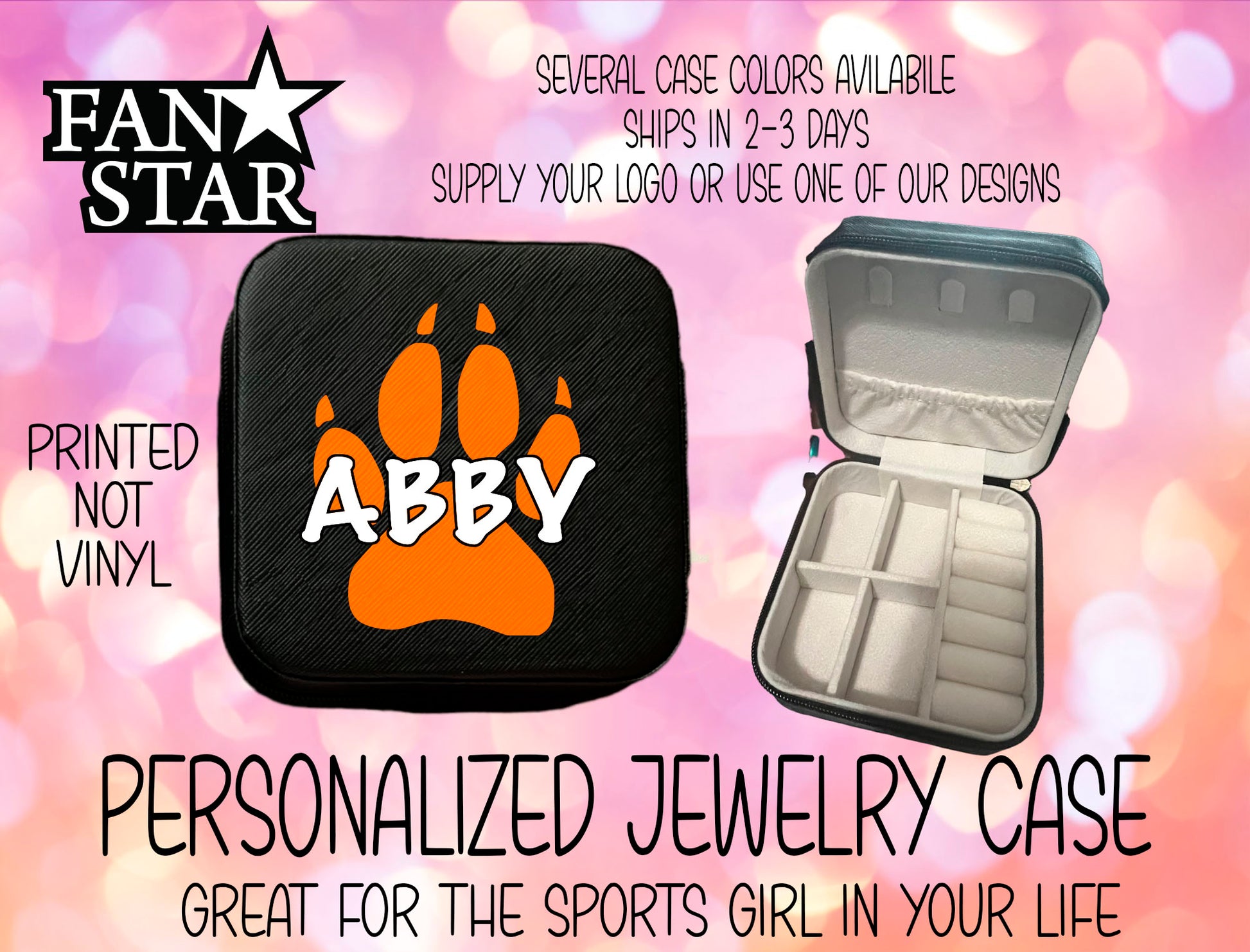 This adorable jewelry box is the perfect travel accessory. The box has a zipper that goes around the box, allowing your jewelry to be safe. There are spots for earrings, necklaces, and rings. The box measures 3.2" x 3.2". The design is printed directly onto the box.
