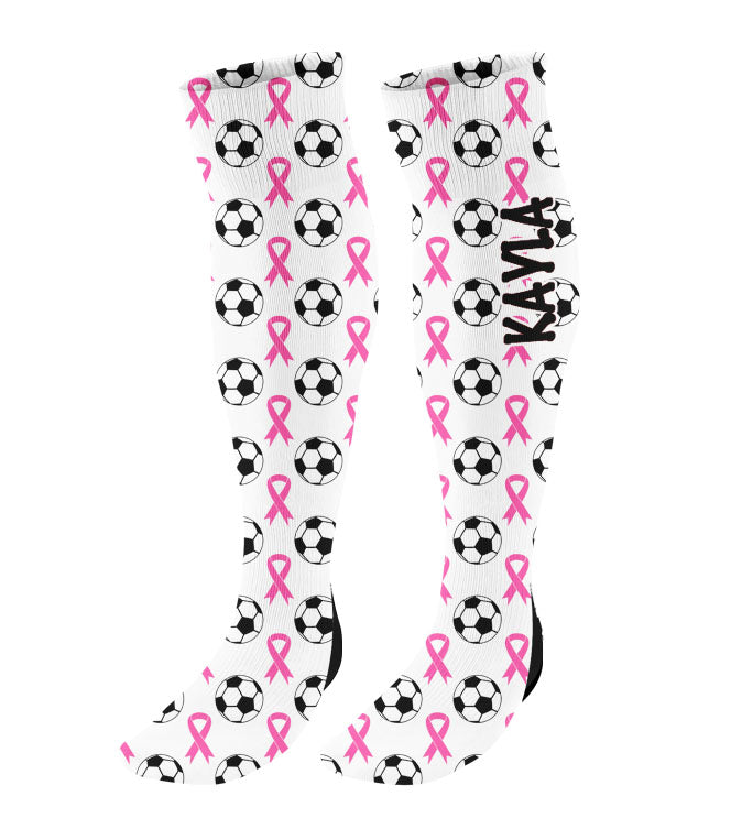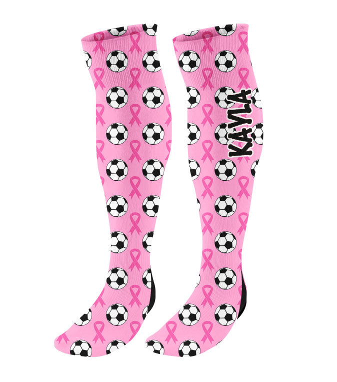 Personalized Soccer Breast Cancer Awareness Ribbon Knee High Socks