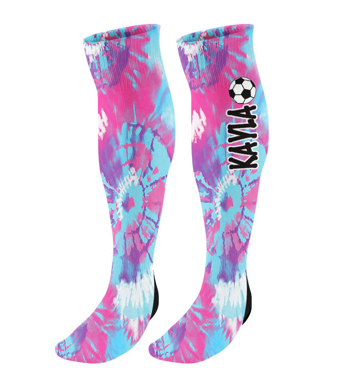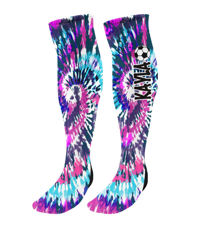Personalized Soccer Knee High Socks - Tie Dye Background