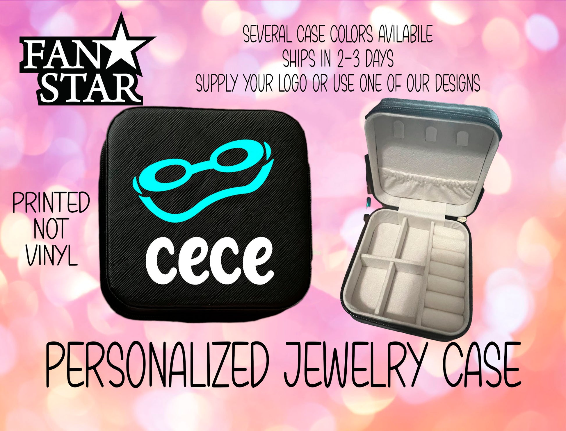 This adorable jewelry box is the perfect travel accessory. The box has a zipper that goes around the box, allowing your jewelry to be safe. There are spots for earrings, necklaces, and rings. The box measures 3.2" x 3.2". The design is printed directly onto the box.