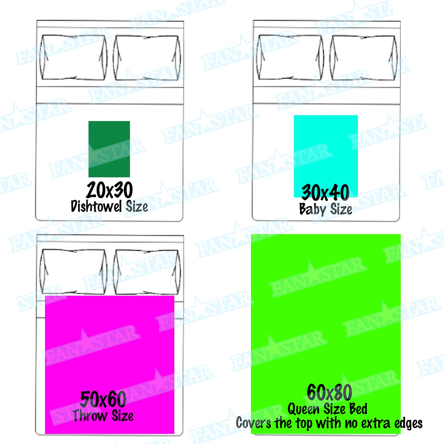 60x80 - Large - Great for teens and adults. This is the preferred size for athletes. This blanket will also fit the top of a queen size bed.