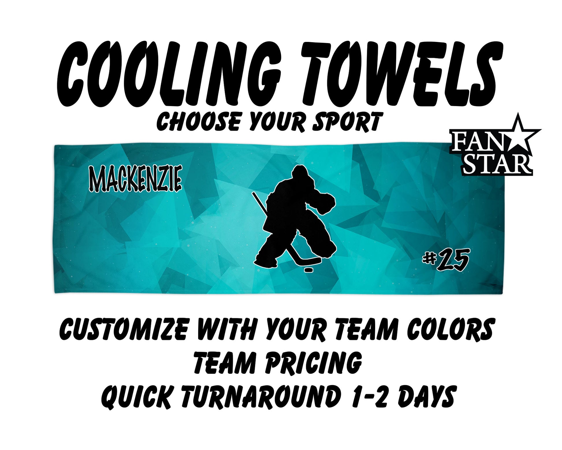 These cooling towels are perfect for keeping your athletes cool! The towels can be customized to match your team colors and can also be personalized with their names and numbers. The towel measures 12" tall by 31-1/2" wide. The towel is sublimated so the printing is permanent, which means it won't rub off or peel! The back side of the towel is white. The towel can be machine washed and dried; however, it is recommended to not dry with fabric softener.