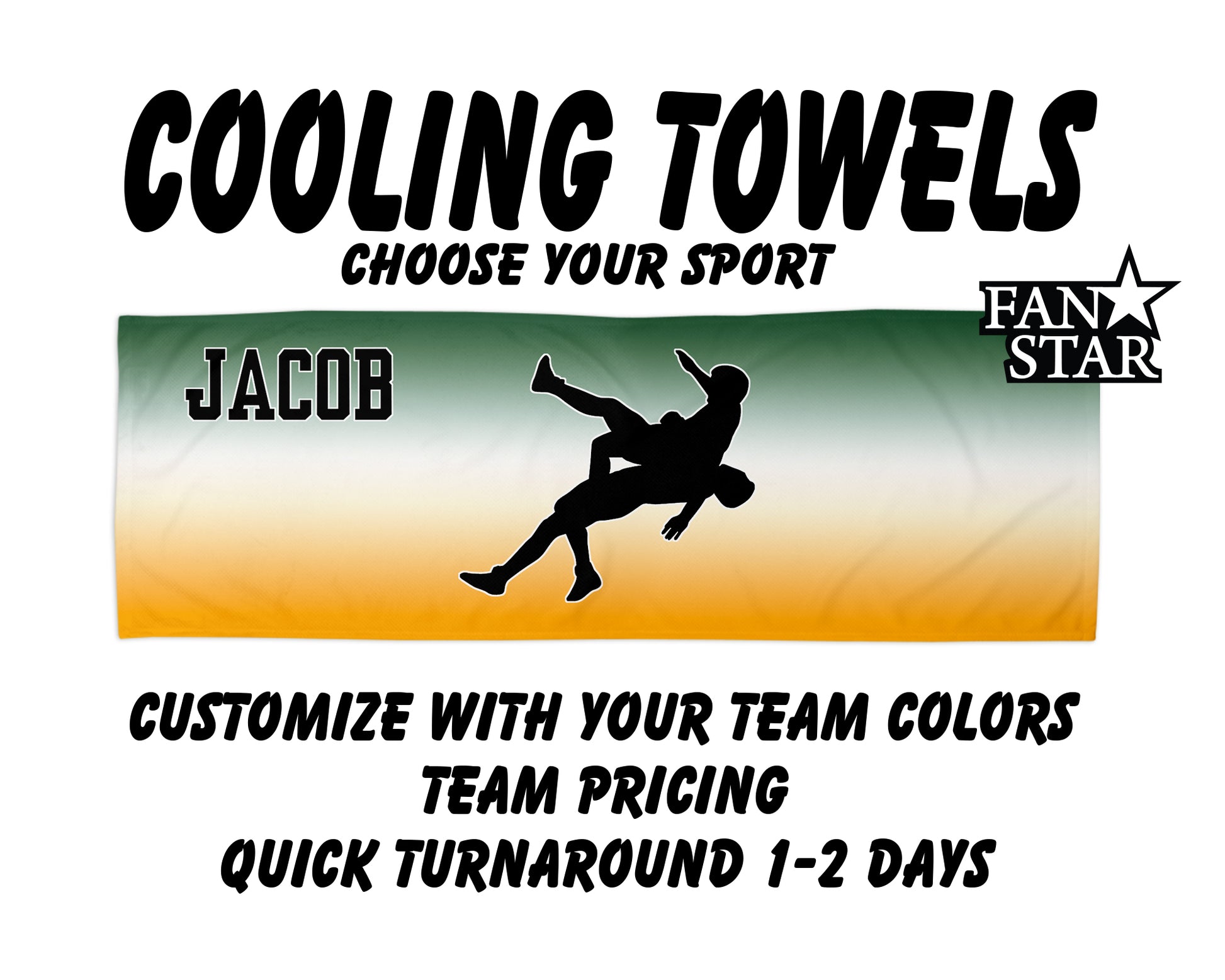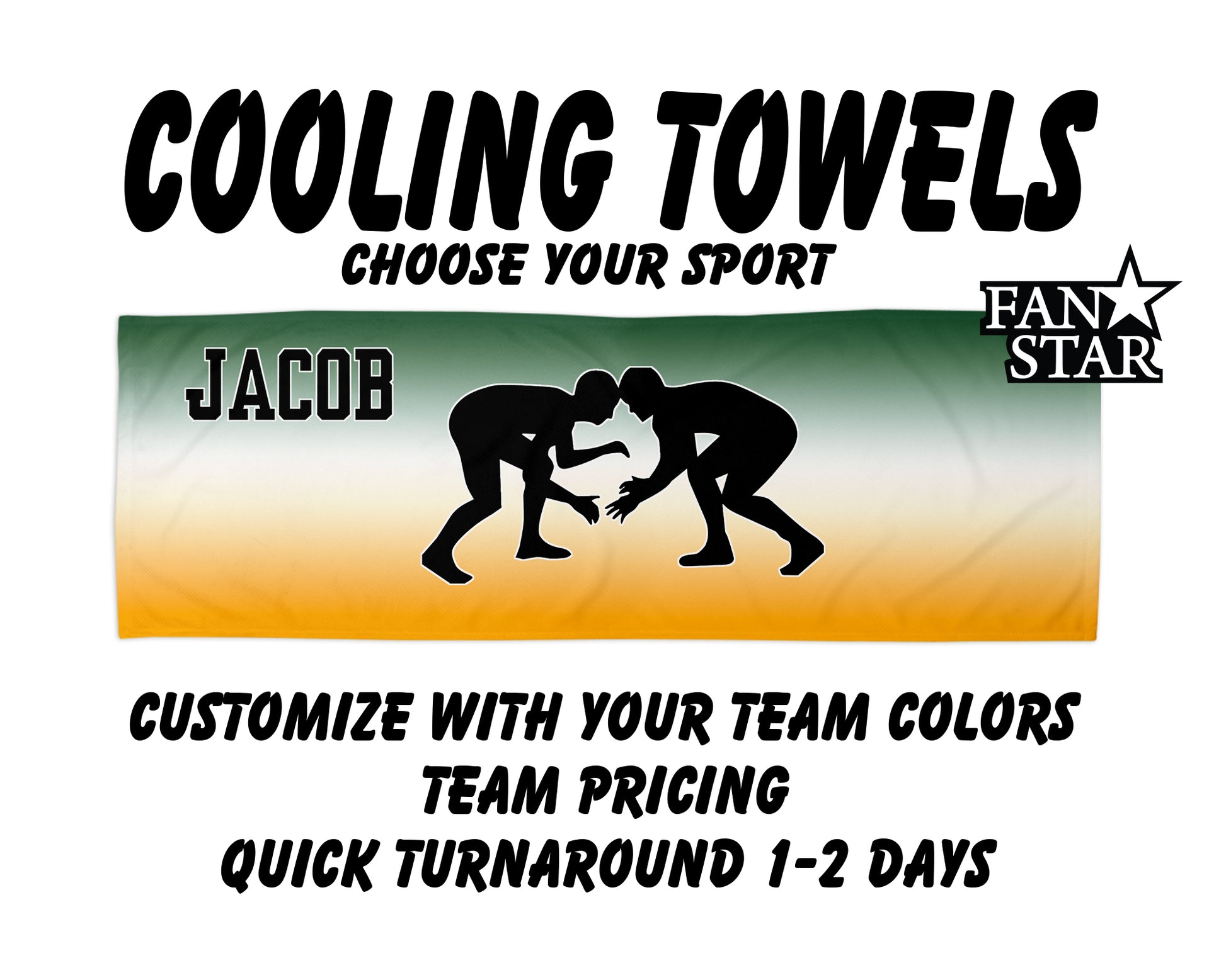 These cooling towels are perfect for keeping your athletes cool! The towels can be customized to match your team colors and can also be personalized with their names and numbers. The towel measures 12" tall by 31-1/2" wide. The towel is sublimated so the printing is permanent, which means it won't rub off or peel! The back side of the towel is white. The towel can be machine washed and dried; however, it is recommended to not dry with fabric softener.
