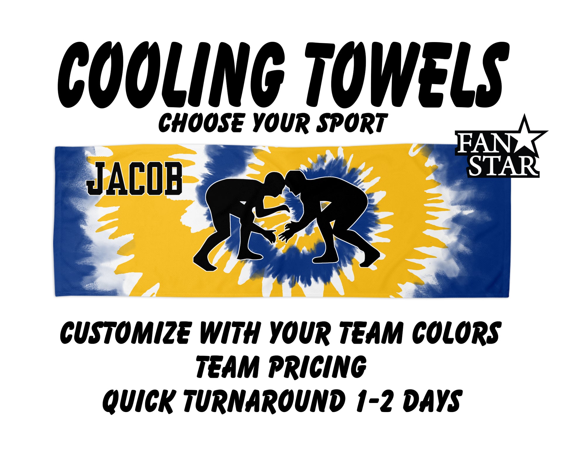 These cooling towels are perfect for keeping your athletes cool! The towels can be customized to match your team colors and can also be personalized with their names and numbers. The towel measures 12" tall by 31-1/2" wide. The towel is sublimated so the printing is permanent, which means it won't rub off or peel! The back side of the towel is white. The towel can be machine washed and dried; however, it is recommended to not dry with fabric softener.