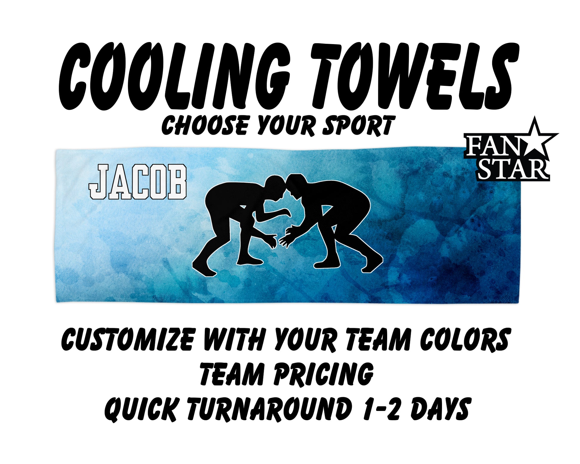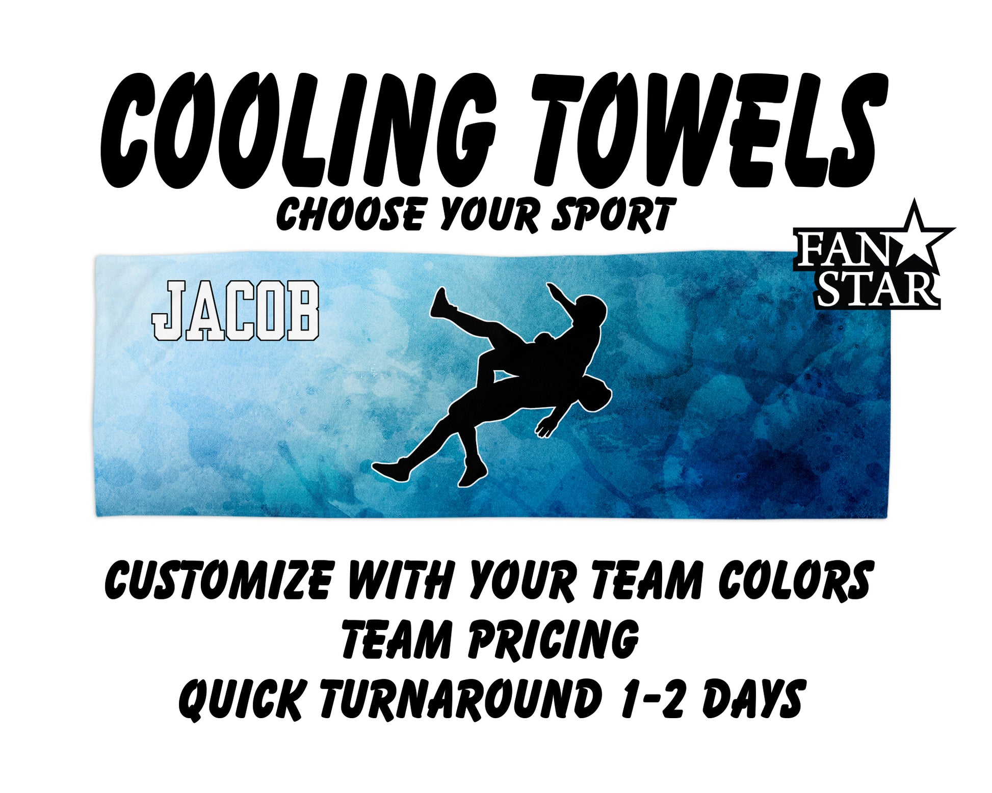 These cooling towels are perfect for keeping your athletes cool! The towels can be customized to match your team colors and can also be personalized with their names and numbers. The towel measures 12" tall by 31-1/2" wide. The towel is sublimated so the printing is permanent, which means it won't rub off or peel! The back side of the towel is white. The towel can be machine washed and dried; however, it is recommended to not dry with fabric softener.